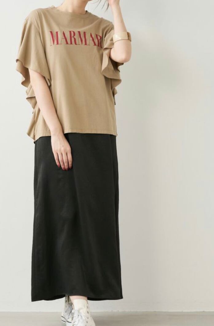 ラッフルスリーブは、気になる二の腕をさりげなく隠してくれてブラウス感覚で着れる便利な1枚です。