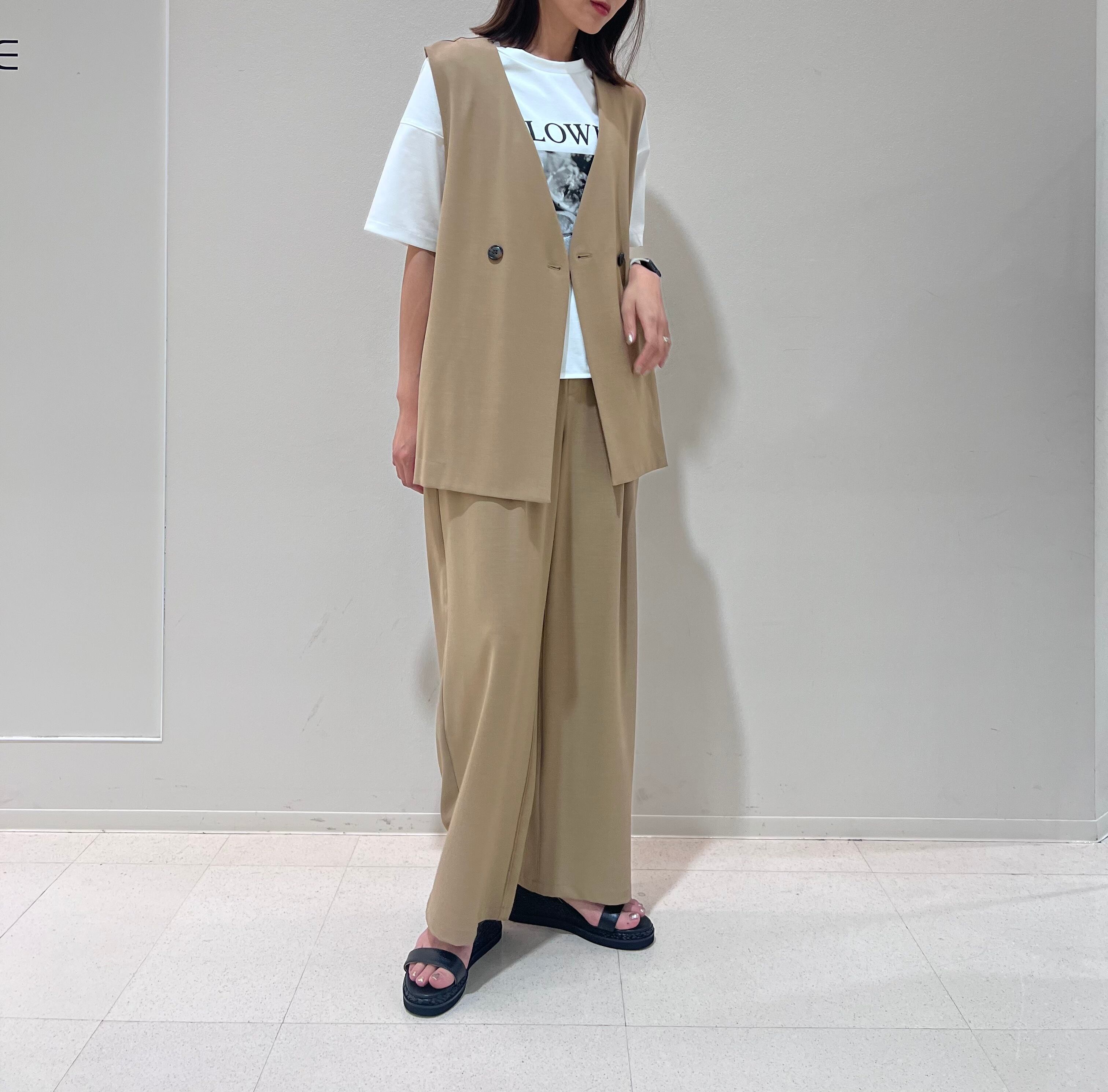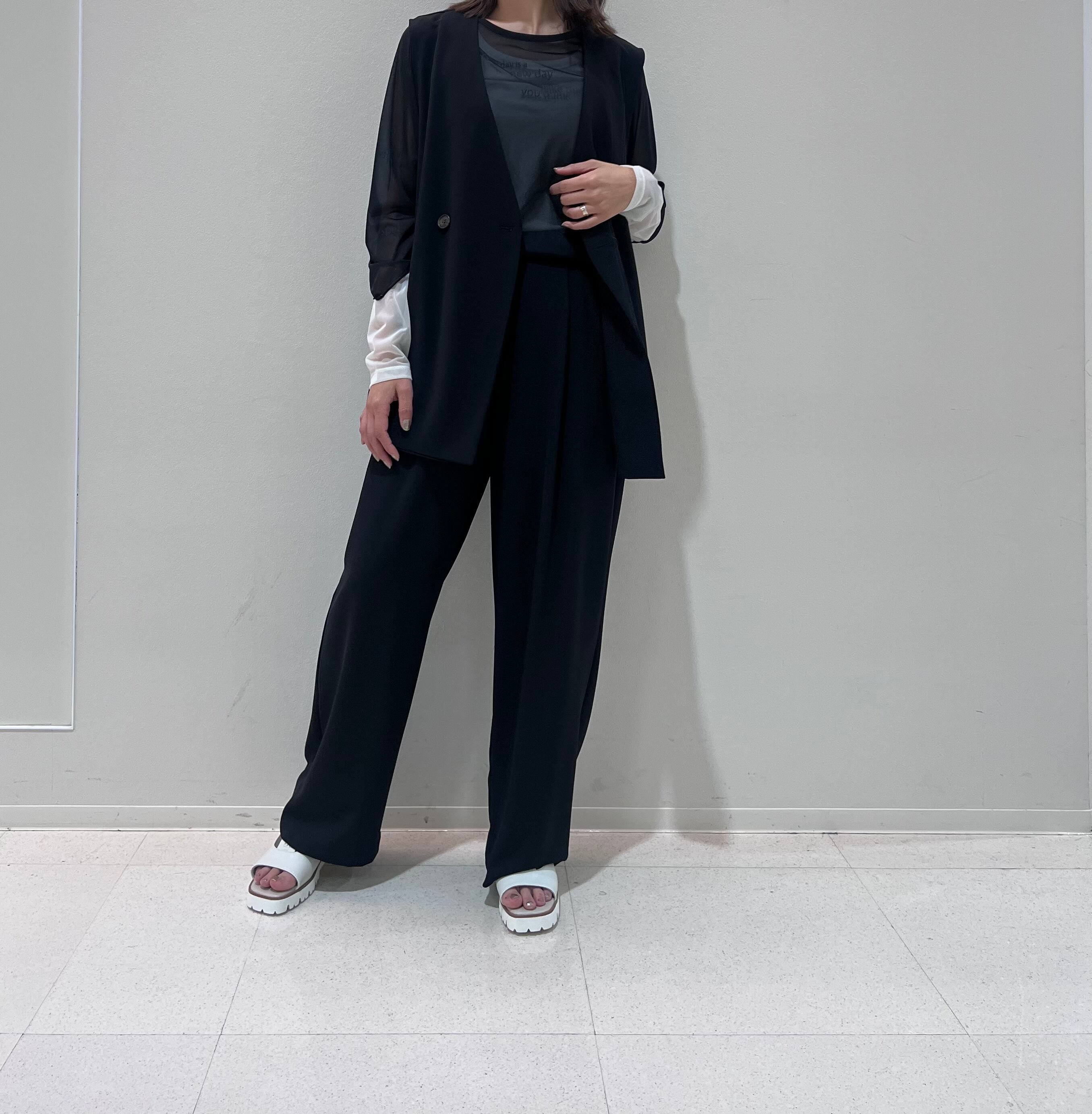 シワが付きにくいのでワイドシルエットのパンツもストレスなく着用頂けます。
