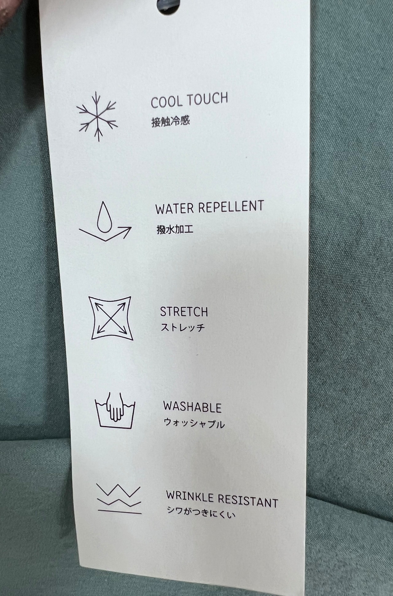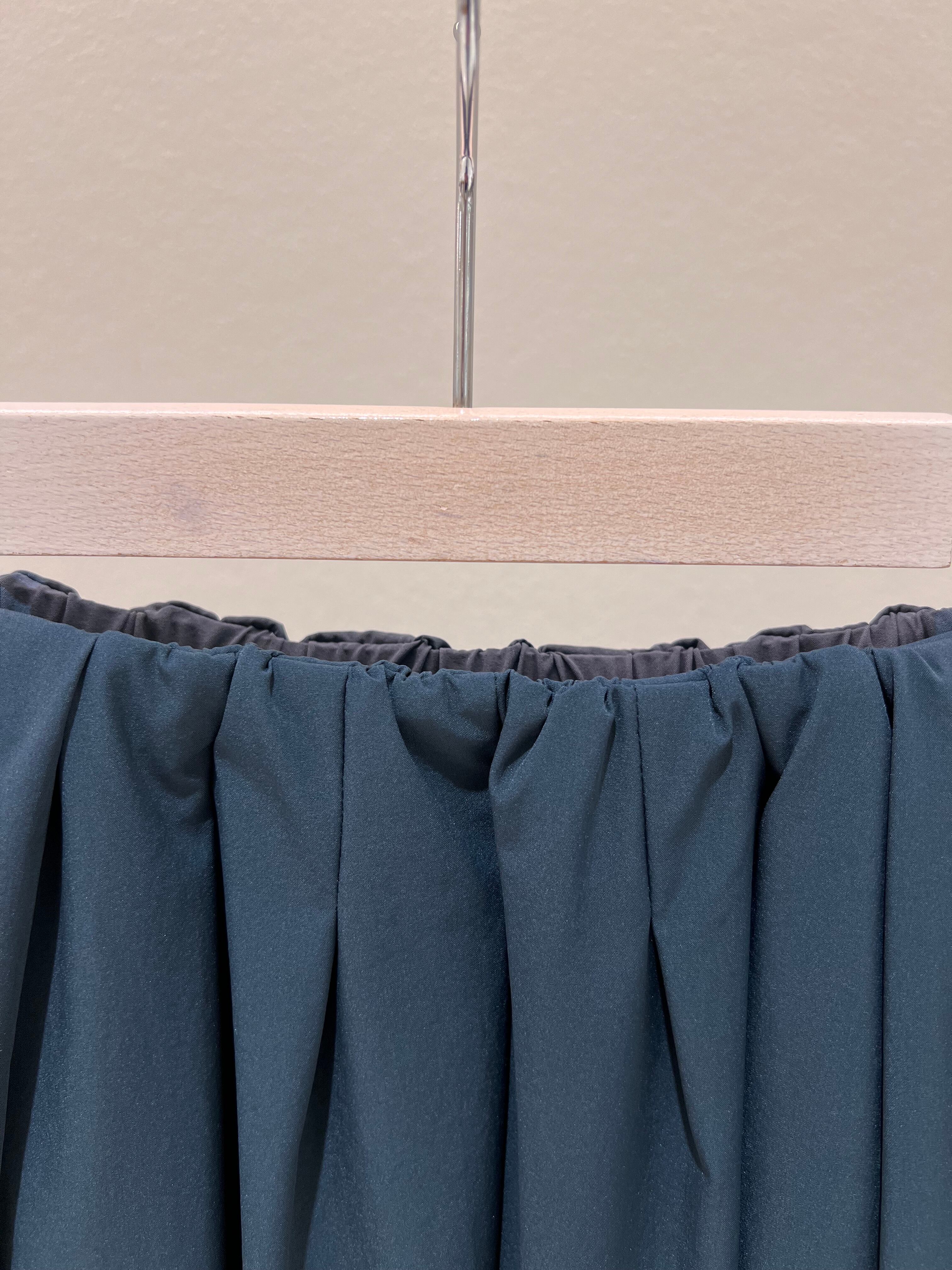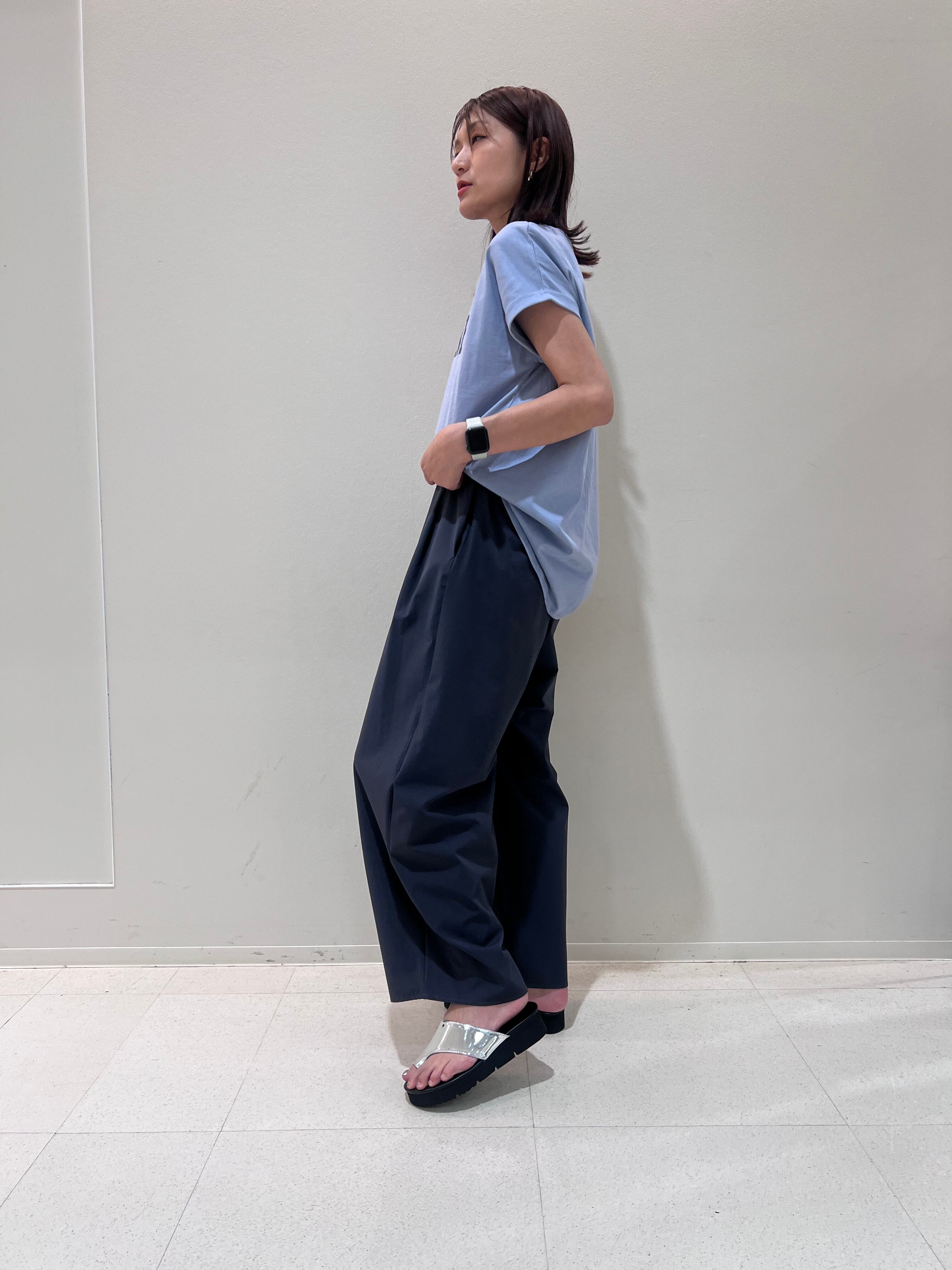 ウエストまわりの複雑なタックデザインが可愛いコクーンシルエットのパンツをイージーケア対応/接触冷感のある生地に落とし込みました。