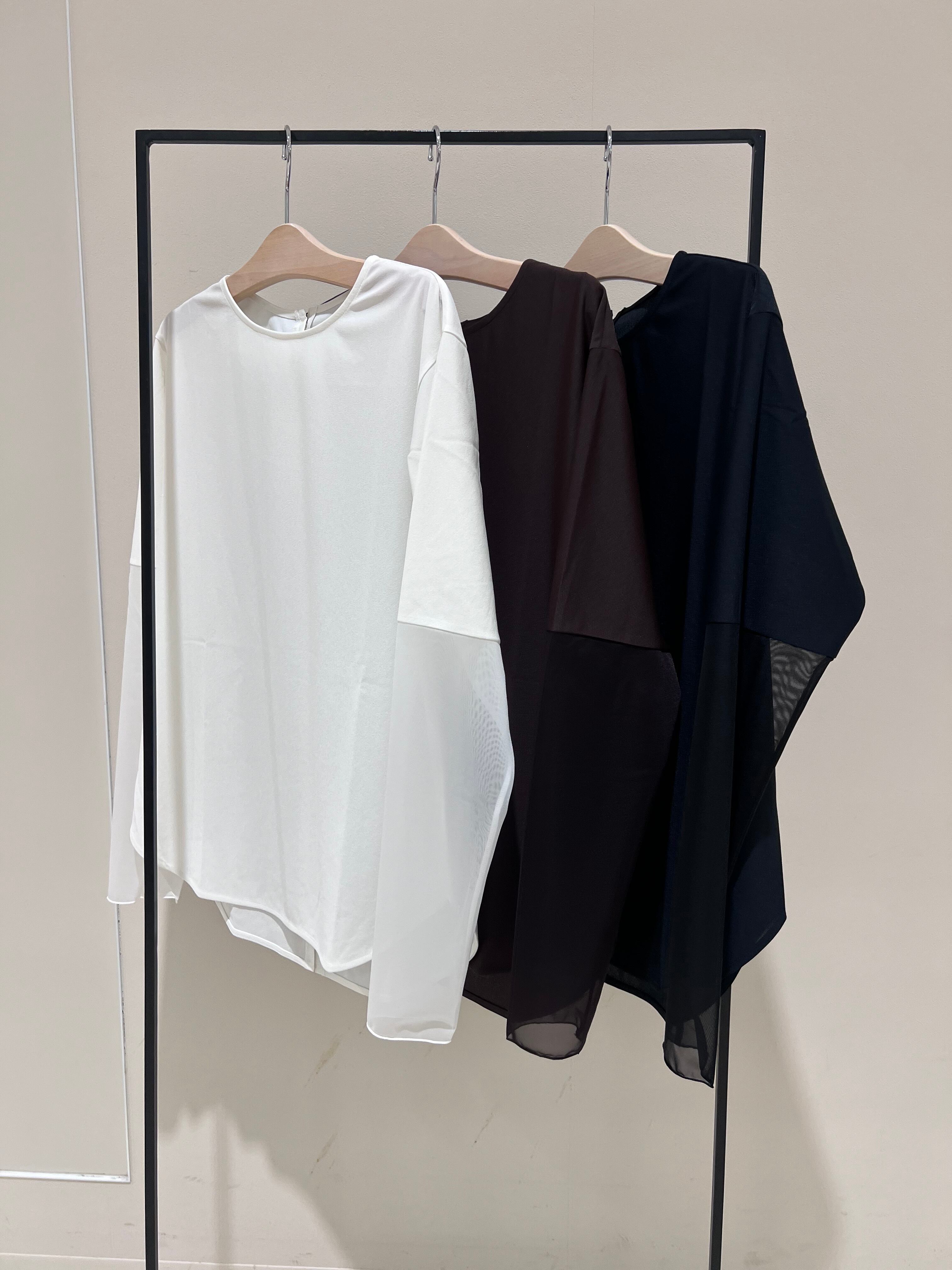 裾と袖口のシアーを見せて