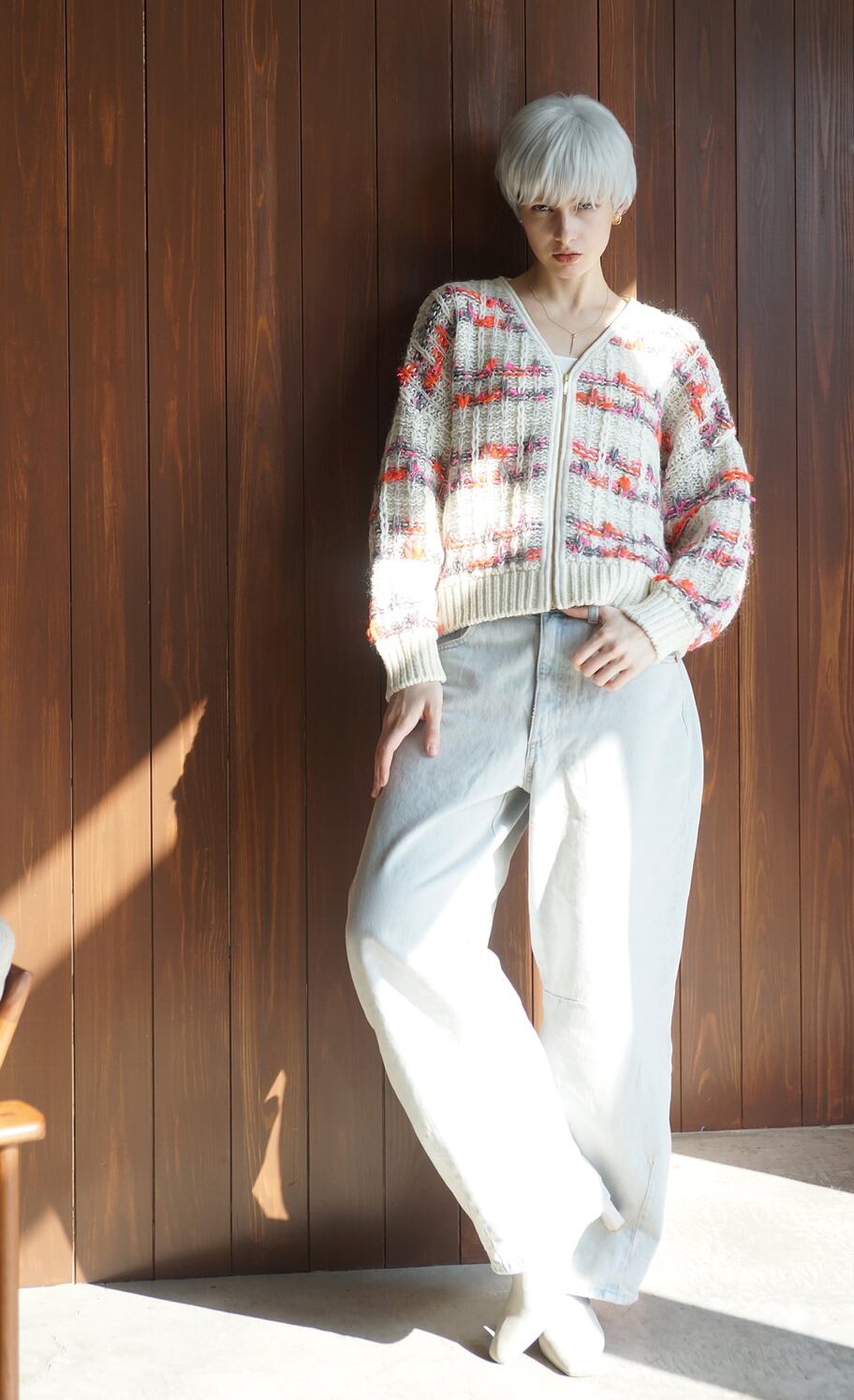 鮮やかな蛍光スラブヤーンが目を引くニットブルゾン。ふんわりと柔らかな着心地に、ゆったりとしたオーバーシルエットで、リラクシーでありながら上品な雰囲気を纏います。