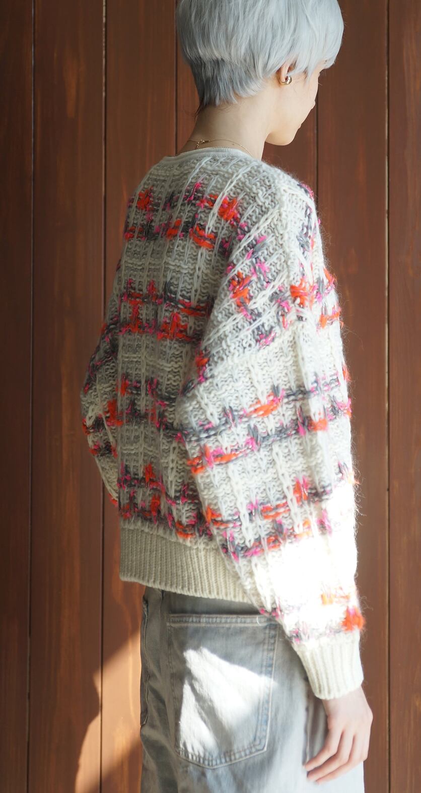 蛍光スラブヤーンの差し色が新鮮な“ネオチェック”ニットブルゾン。